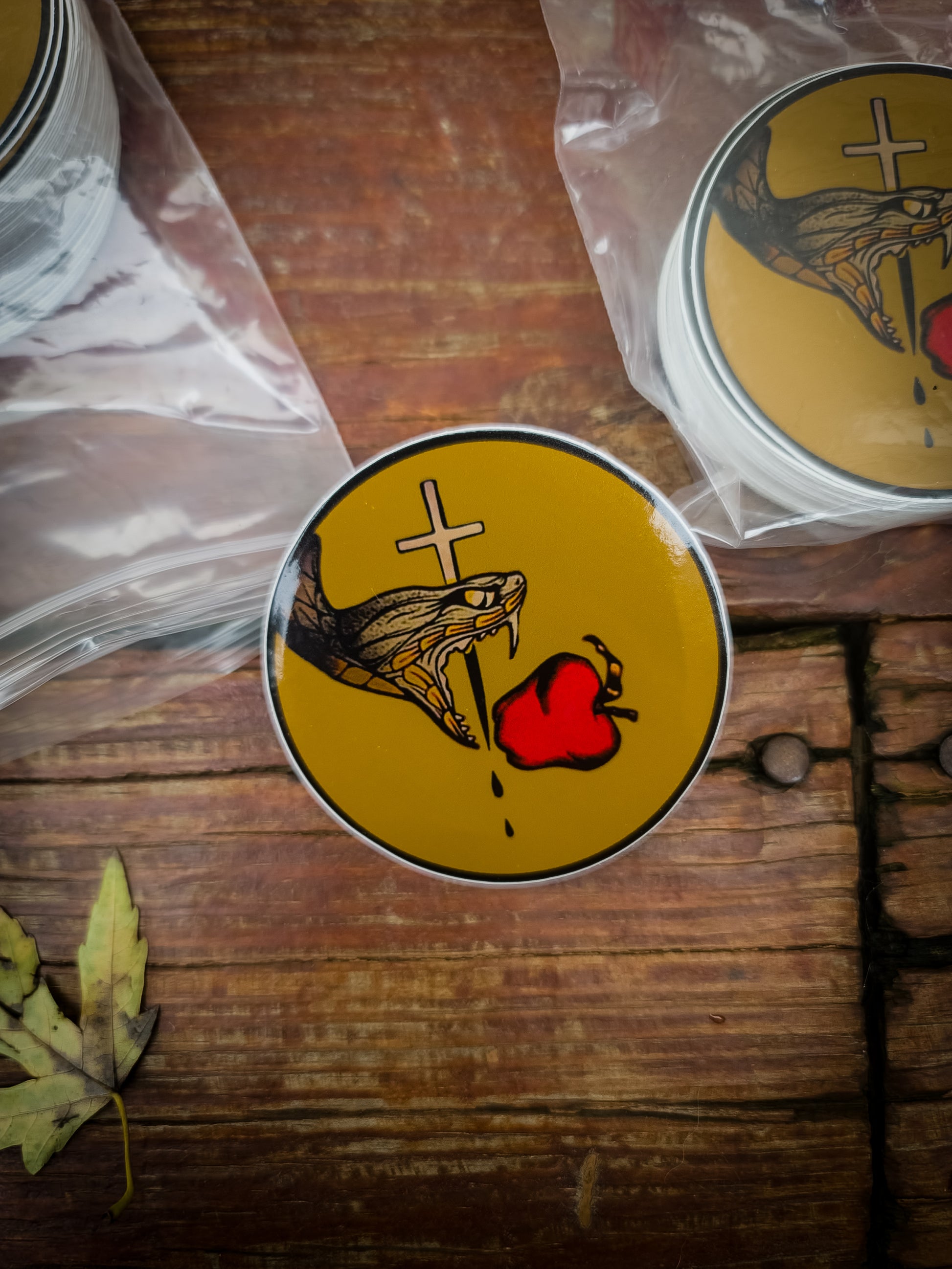 𝚃𝚑𝚒𝚜 𝚜𝚝𝚒𝚌𝚔𝚎𝚛 𝚜𝚑𝚘𝚠𝚜 𝚝𝚑𝚎 𝚜𝚎𝚛𝚙𝚎𝚗𝚝 𝚊𝚗𝚍 𝚏𝚘𝚛𝚋𝚒𝚍𝚍𝚎𝚗 𝚏𝚛𝚞𝚒𝚝 (𝚌𝚑𝚊𝚛𝚊𝚌𝚝𝚎𝚛𝚒𝚣𝚎𝚍 𝚋𝚢 𝚊𝚗 𝚊𝚙𝚙𝚕𝚎) 𝚜𝚢𝚖𝚋𝚘𝚕𝚒𝚣𝚒𝚗𝚐 𝚝𝚑𝚊𝚝 𝚘𝚛𝚒𝚐𝚒𝚗𝚊𝚕 𝚜𝚒𝚗, 𝚊𝚗𝚍 𝚝𝚑𝚎 𝚌𝚛𝚘𝚜𝚜 𝚙𝚒𝚎𝚛𝚌𝚒𝚗𝚐 𝚒𝚝𝚜 𝚜𝚔𝚞𝚕𝚕 𝚜𝚢𝚖𝚋𝚘𝚕𝚒𝚣𝚒𝚗𝚐 𝚘𝚞𝚛 𝚝𝚛𝚒𝚞𝚖𝚙𝚑 𝚘𝚟𝚎𝚛 𝚒𝚝 𝚝𝚑𝚛𝚘𝚞𝚐𝚑 𝚎𝚝𝚎𝚛𝚗𝚊𝚕 𝚕𝚒𝚏𝚎.